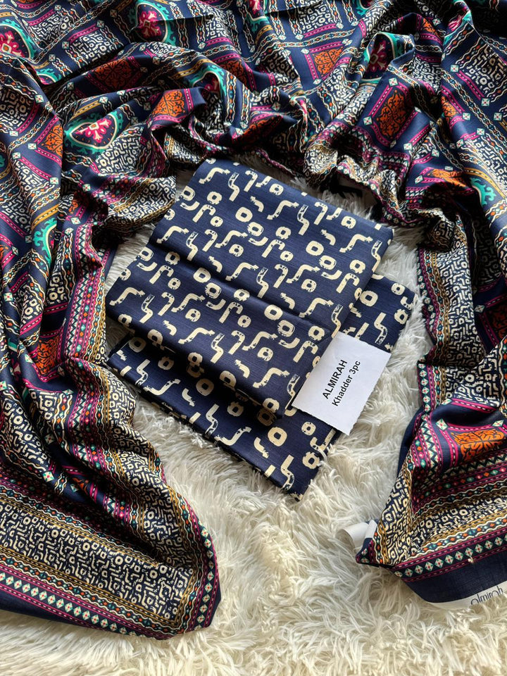 Almirah khadar 3 piece digital printed unstitched suit