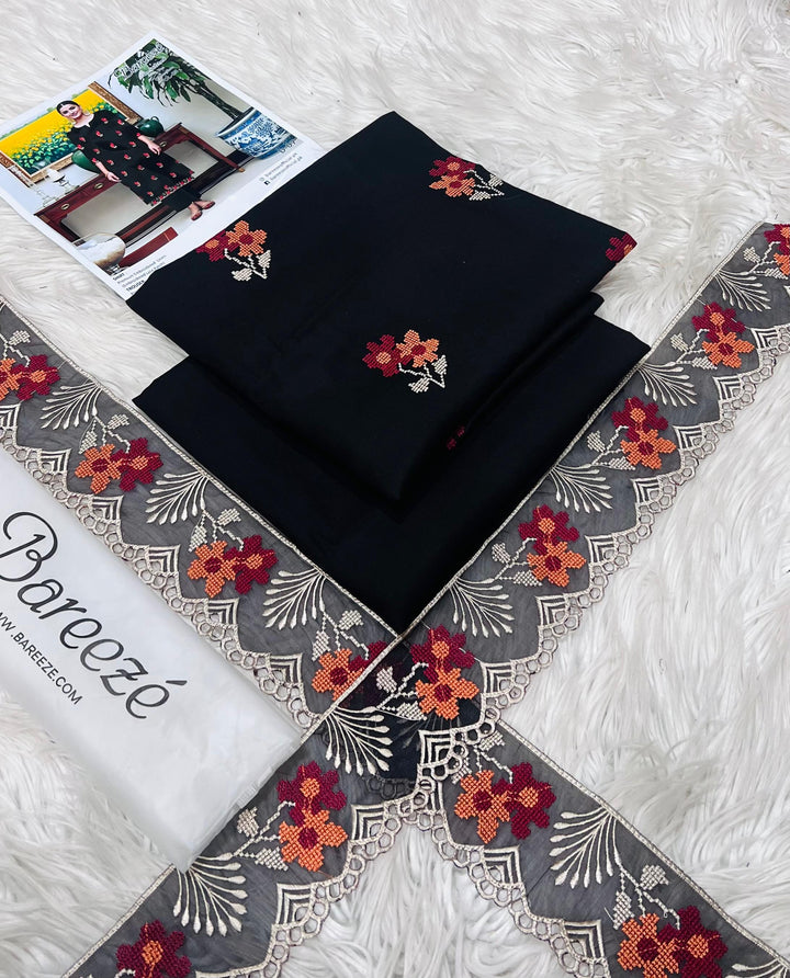 Bareeze linen 2 piece with embroidery patch and embroidery on shirt